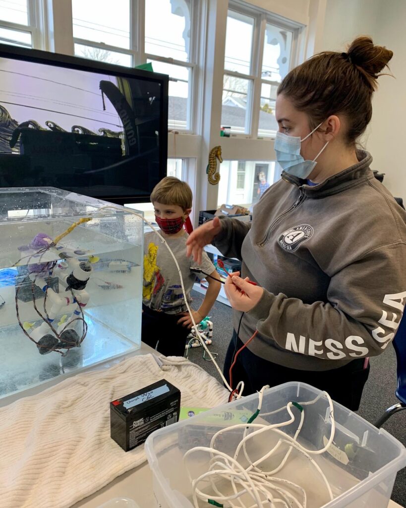 While many of our programs use ocean education to increase STEM engagement, NESS’s Remotely Operated Vehicle (ROV) lesson takes STEM curriculum under the water! We give students the tools to design and build their own ROV. The students continue the engineering process by testing their ROV in the ocean. Then they make modifications to improve their design. To integrate topics beyond engineering, students must have knowledge of how saltwater affects the density of the ROV, how the ROV technology might affect the organisms it encounters, and how to use detailed mathematical measurements on their ROV’s blueprints to ensure it can be replicated. This brings real world ocean technology to students to engage them in STEM learning at any grade level or ability.